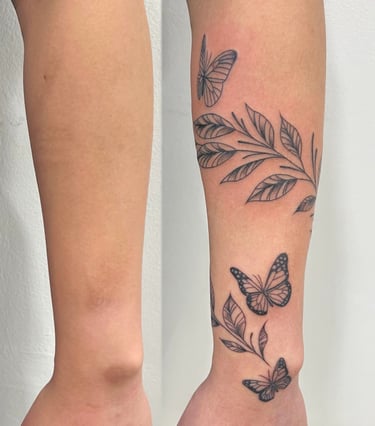 Cabe recordar que en este caso pudimos adaptarnos al diseño que ella tenía en mente, logrando armonía, feminidad y elegancia en su tatuaje.