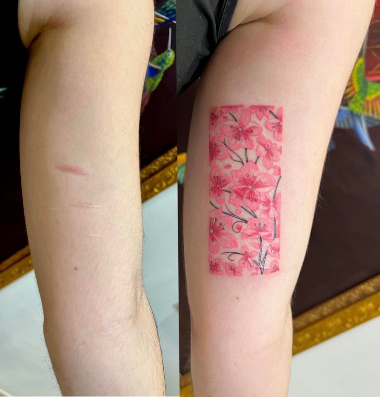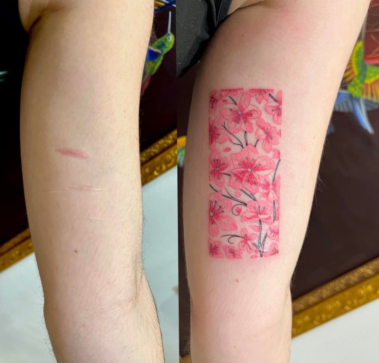 How to take advantage of the color of the keloid to use it as camouflage among your new tattoo.