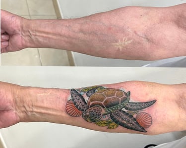 The best personalized tattoo designed exclusively step by step on a burn. Gustavo thinks at all times how to place every detail so that it is perfect. It's great and the treatment couldn't be better. An experience that I will certainly repeat. Thank you from the bottom of my heart.